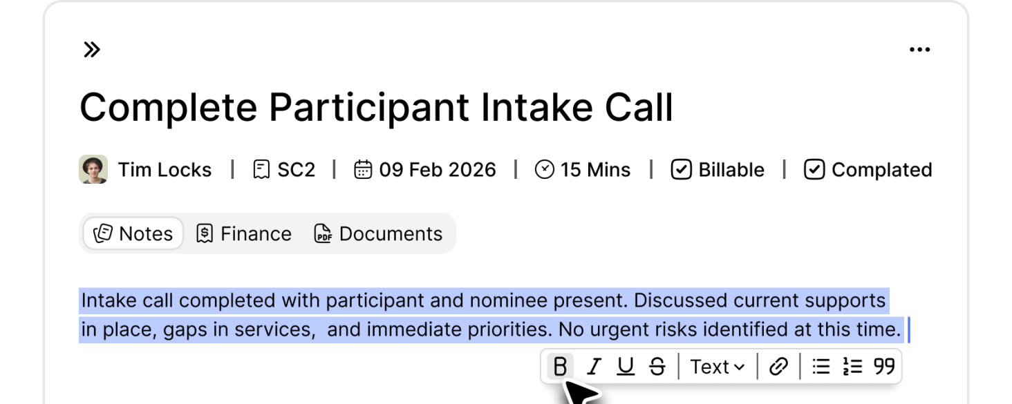 Monitor budgets, manage service delivery, and automate NDIS reporting.