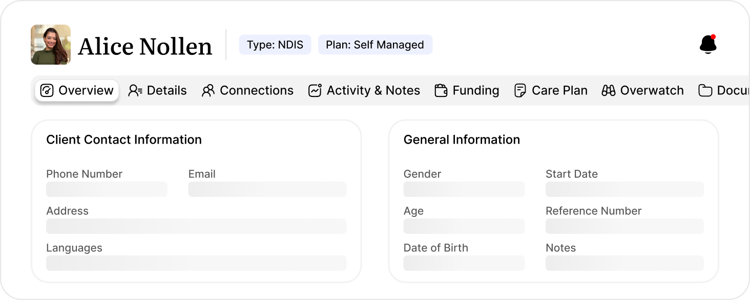 Keep every client detail in one secure, central profile so your team can onboard faster, stay informed, and deliver more consistent care.