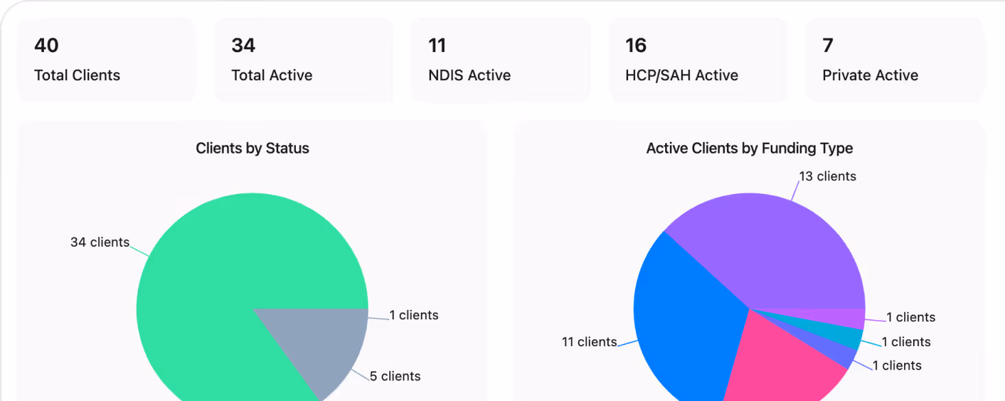 Monitor billable hours, invoice status, and NDIA claim outcomes in one view. See what’s paid, outstanding, or rejected so finance teams can act quickly to protect cash flow and reduce manual follow‑up.