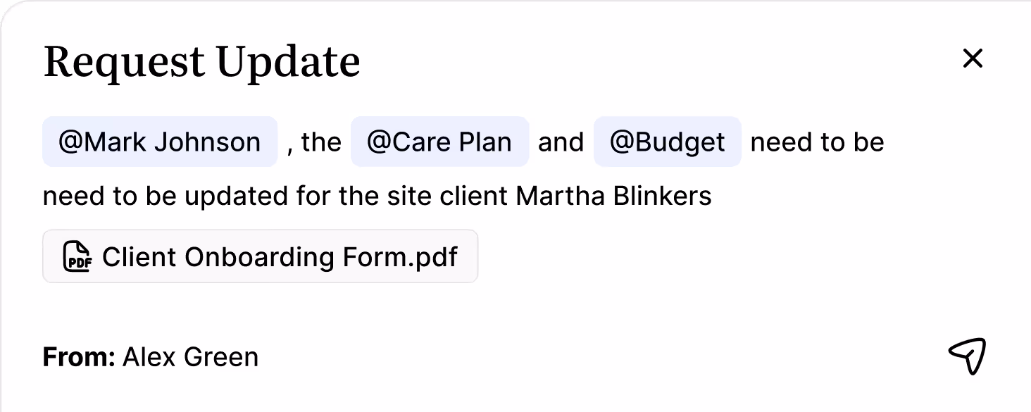 Maintain separate lists for support staff and admin owners at each Site. Give teams a single “who supports this house” view for handovers, escalation, and day‑to‑day coordination.
