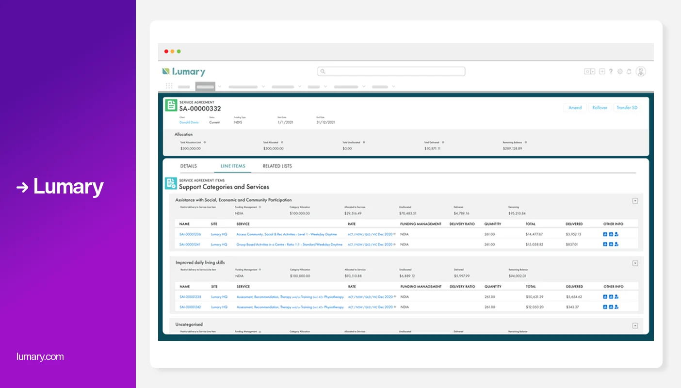 Lumary is a powerful care management platform built on Salesforce, designed for large NDIS and aged care providers who need enterprise-level functionality. It offers robust tools for compliance, data management, and service delivery, but it may be complex for smaller teams due to its advanced setup.