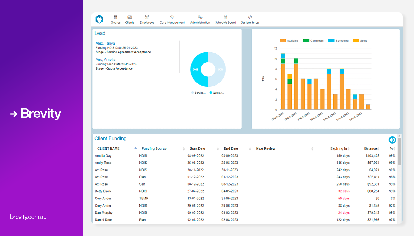 Brevity is a highly configurable care management platform designed for NDIS, aged care, and disability service providers. Known for its flexibility, it helps reduce manual admin with automation tools across rostering, billing, and compliance, making it well-suited for providers needing deep customisation.