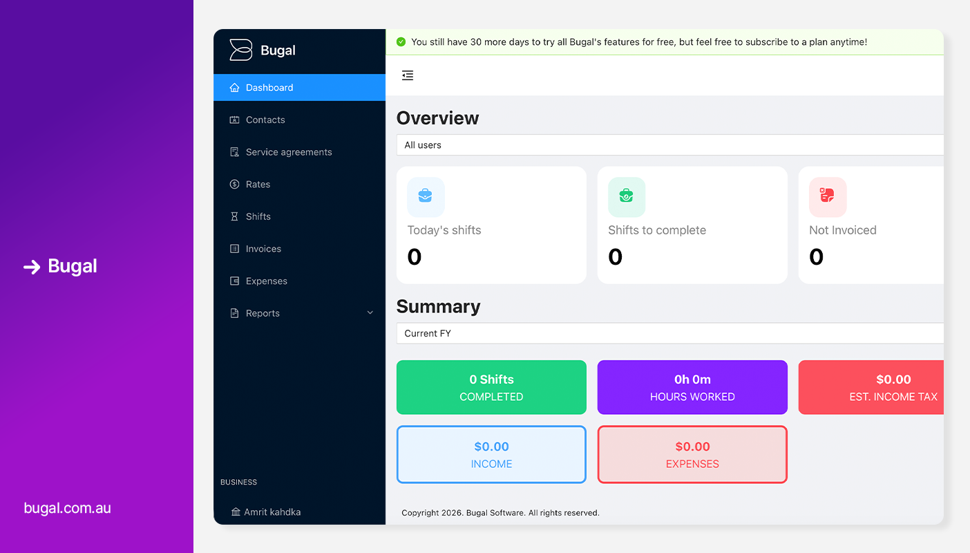 Bugal is a platform built specifically for sole traders and micro NDIS providers, helping them start, manage, and grow their services with minimal cost and complexity. It combines operational tools with guidance and resources, making it especially useful for providers entering the NDIS space.