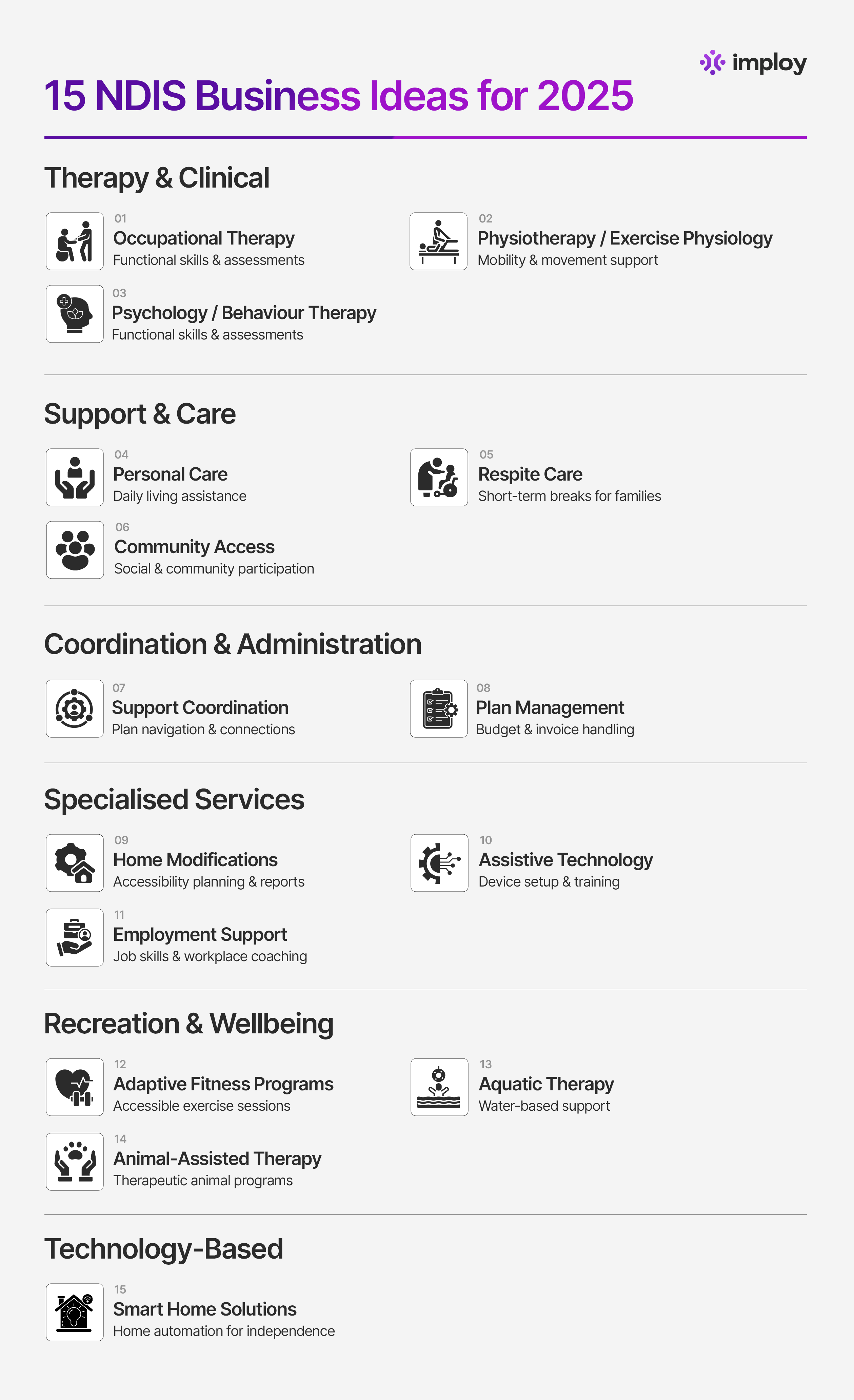 Imploy provides easy-to-follow guidance for starting your NDIS business, including resources for: