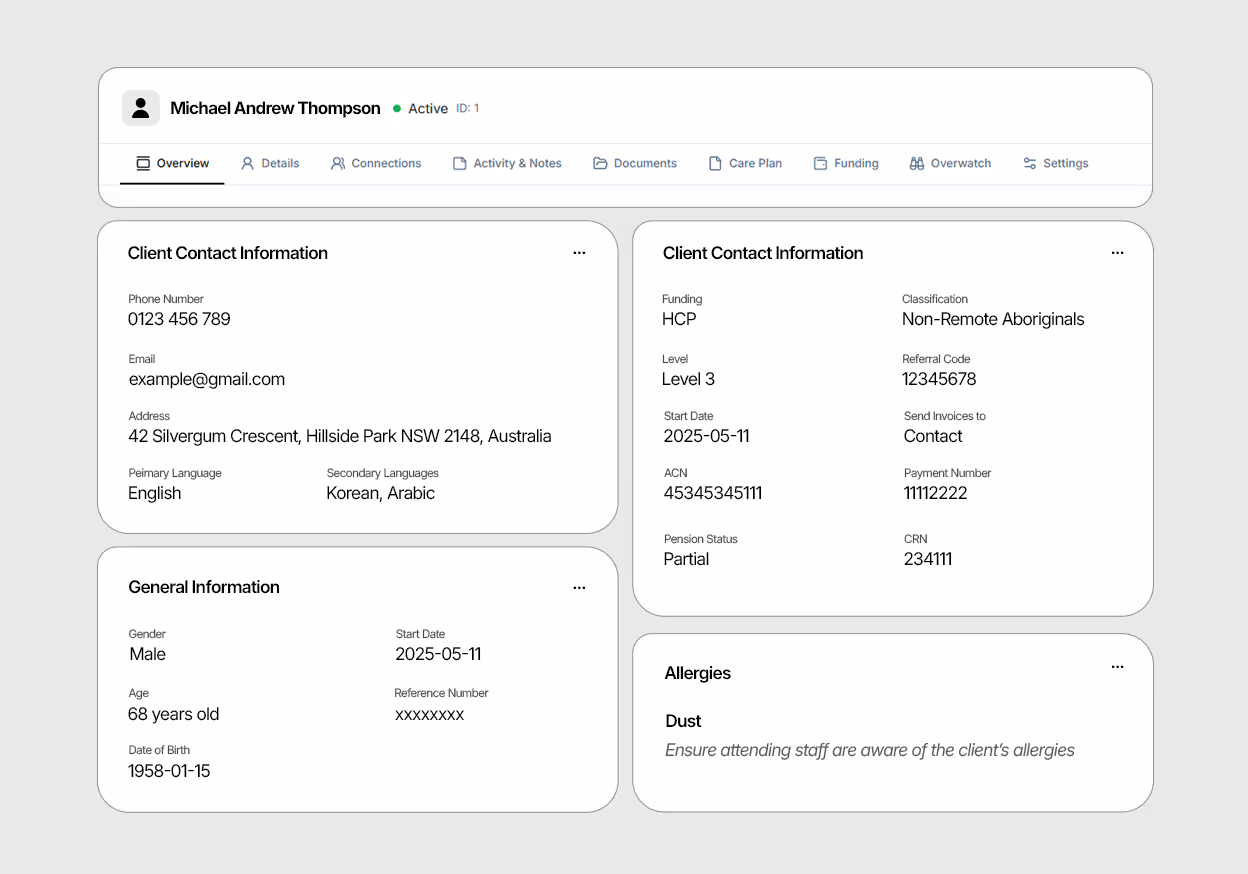 Ditch the paper files and scattered spreadsheets. Store every NDIS plan, risk assessment, and service agreement in one secure, digital profile designed for easy access by your small team.